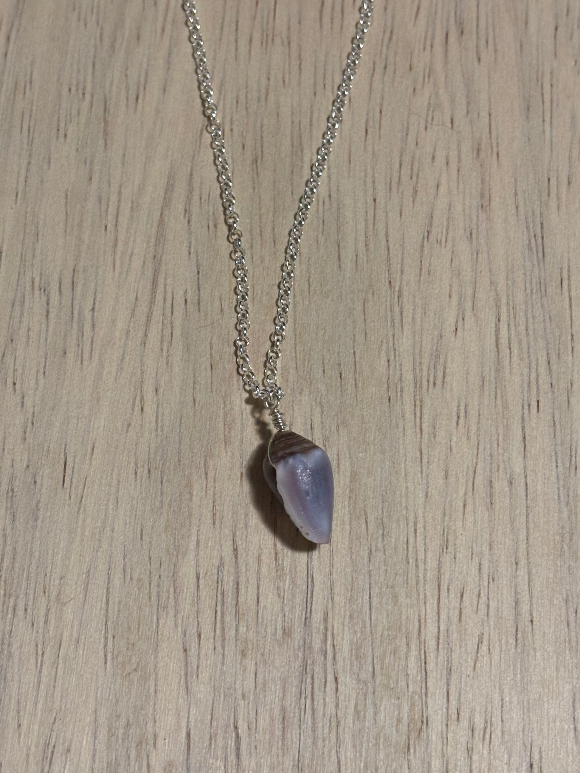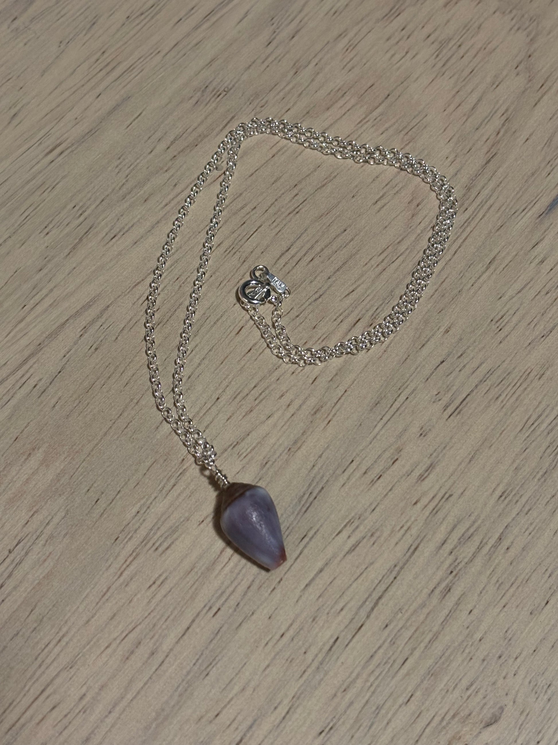 A one-of-a-kind coastal treasure, this necklace features a hand-collected tiny purple cone shell from California, accented with a sterling silver rollo chain for a dreamy ocean-meets-vintage vibe.